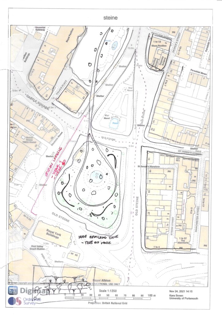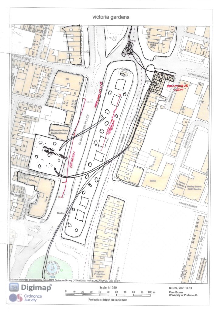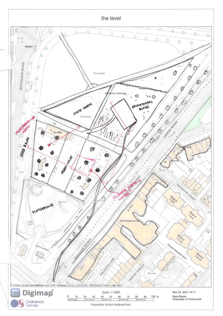 For the Flora section I developed the idea to move some of the other spaces on the Level so that the rewilding zone could be larger. I felt it would work well with my idea as I want to make it as if the city is being taken over by nature. to do this I changed the shape of the skate park. I was thinking of getting rid of this space but it is widely used by the the community so felt it was necessary to keep.